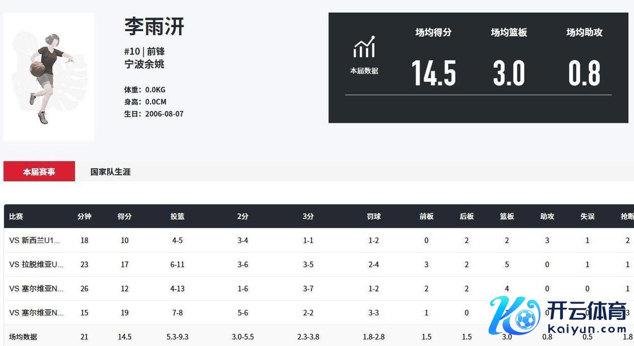 而李雨汧本被录用厚望填补火力空白。 四场热身赛她场均砍下14.5分,对阵塞尔维亚NIBAK队时更8投7中狂轰19分,三分球2投全中。