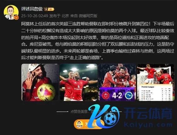 主场赢下布莱顿之后,曼联英超连胜场次达到了3场,而他们的名次也暂时高潮至英超第4位。关于阿莫林而言,他关于曼联的校正仍是初见奏效。而夏窗引进到4大新援,成为球队三连胜本领的肱股之臣。接下来,曼联将在联赛中接连作客丛林与热刺,这两场事后才智判断曼联是否终于“走上正确的说念路”。