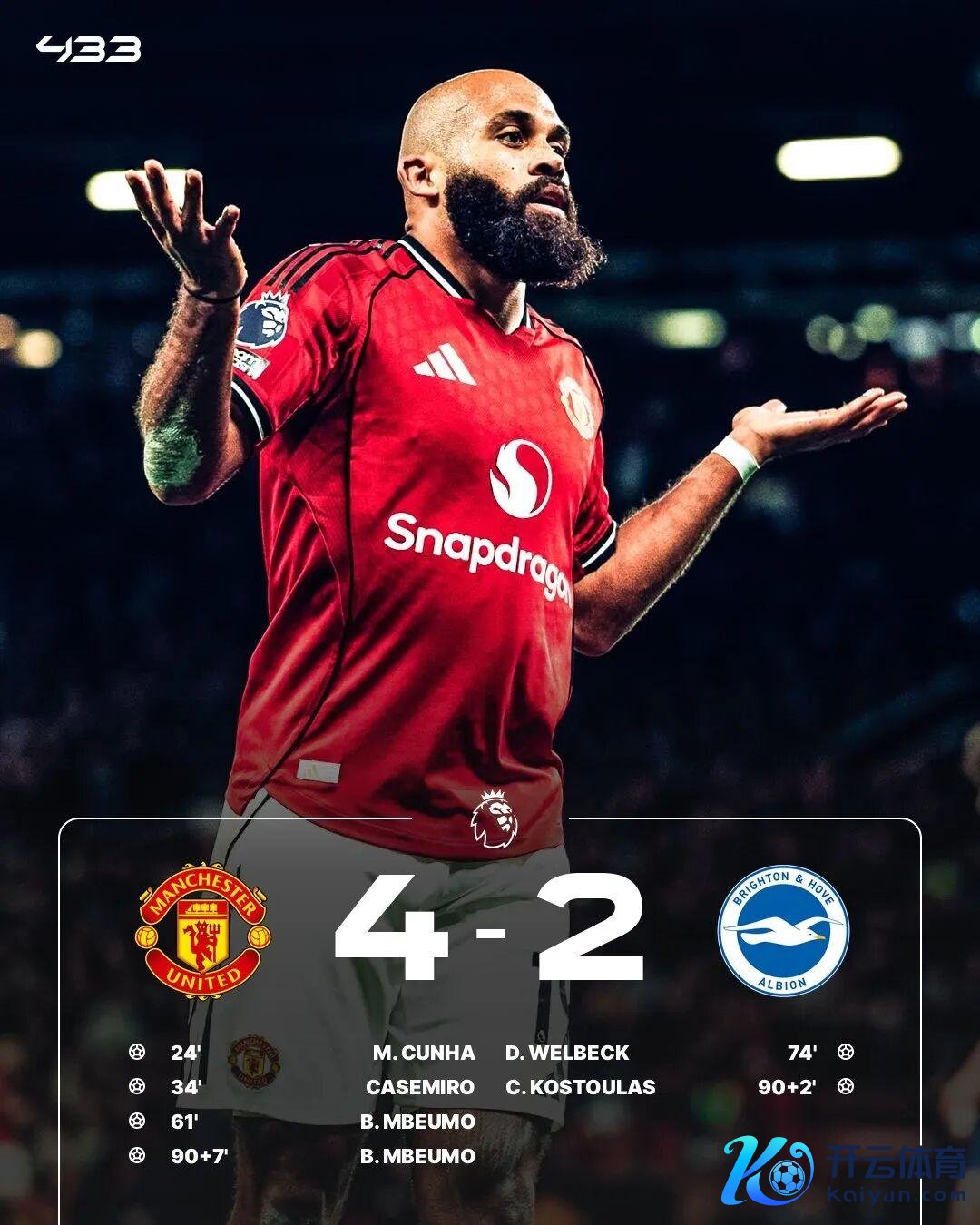 下半场驱动后,谢什科接长传球后传球给姆贝乌莫,后者为曼联打入了本场比赛的第三球。前曼联青训球星通过一记精彩的率性球为客队扳回一球。比赛参加补时阶段,查阿拉姆波斯·科斯托拉斯头球破门,为布莱顿带来了终末的但愿,但姆贝乌莫在终末时刻梅开二度为曼联4-2锁定了胜局。