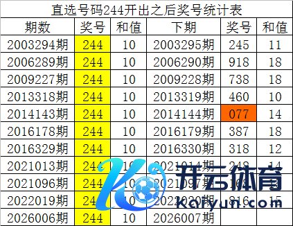 从以上统计不错看出,直选号码244出现之后,其下期奖号:1.下期偶数号码出现概率100%;2.下期全大全小组合莫得出现;3.下期1路号码出现概率100%;4.下期合数出现概率100%;