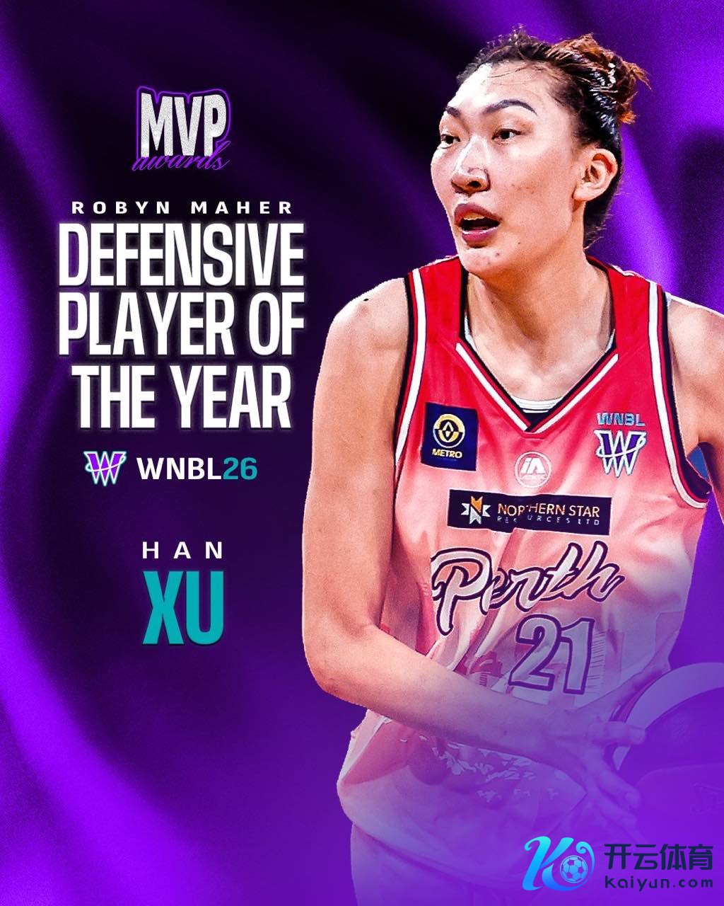 WNBL发文默示:韩旭荣获WNBL年度最好防护球员奖。