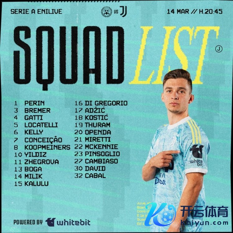 3月14日讯 北京时分来日凌晨,尤文将介意甲第29轮比赛中客场对阵乌迪内斯,尤文公布了此役的球员名单。米利克讲究,弗拉霍维奇连接缺席。