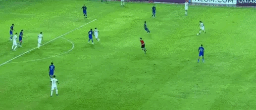 补时第3分钟,伊里安托禁区右侧冲突,岳鑫将其放倒,乌兹别克斯坦籍主裁判纳贾法列夫判罚点球。2分钟后,蒂罗尼操刀主罚点球射中,3-4!
