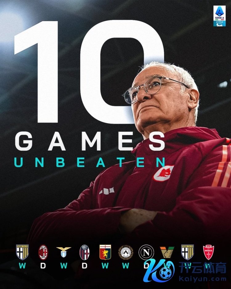 2月26日讯 北京技艺昨日意甲第26轮罗马主场4-0大捷蒙扎,拉涅利指示罗马在曩昔10轮联赛中保抓不败,获取7胜3平的战绩,意甲官方晒出对于这名老帅带队出色战绩的海报。