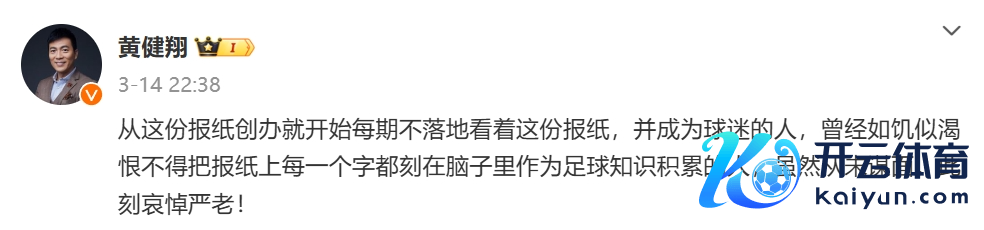 “小时辰最早看的其实照旧足球报(小学的时辰),而不是体坛(那是初中才开动看)。感谢那些年的报说念和回忆,虽从未有契机邂逅,但名字再矜重不外,一齐走好。”