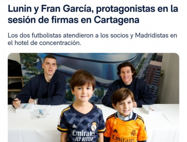 体育集锦 1月6日讯本轮国王杯,皇马将在客场对阵米内拉。皇马官网报说念,皇马球员卢宁和弗兰-加西亚在国王杯赛前参与球迷互动活动。 在签名会上体育集锦,门将卢宁和...