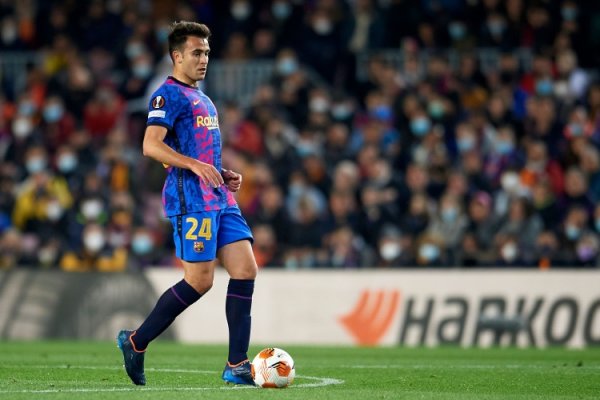 比赛中巴萨中卫埃里克-加西亚射门击中球门门框体育录像/图片