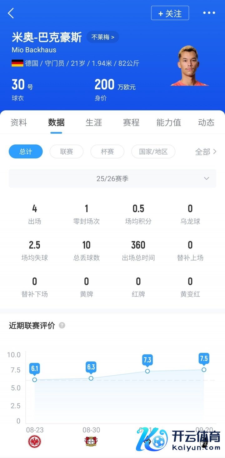 巴克豪斯,现年21岁,本赛季启动成为不莱梅主力门将,共出战4场比赛,丢掉10球,完成1次零封,现在德回身价200万欧。