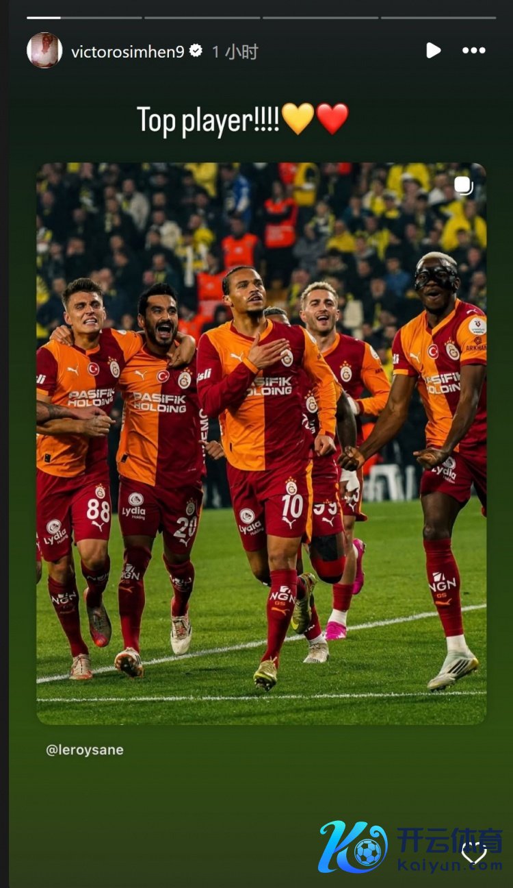 2026-01-09体育录像/图片 12月2日讯 土超第14轮比赛,萨内破门,加拉塔萨雷客场1-1战平费内巴切。 赛后奥斯梅恩社媒晒出萨内庆祝进球的相片体育录像/图片,称赞队友的出色领路,配文:“顶级球员!”