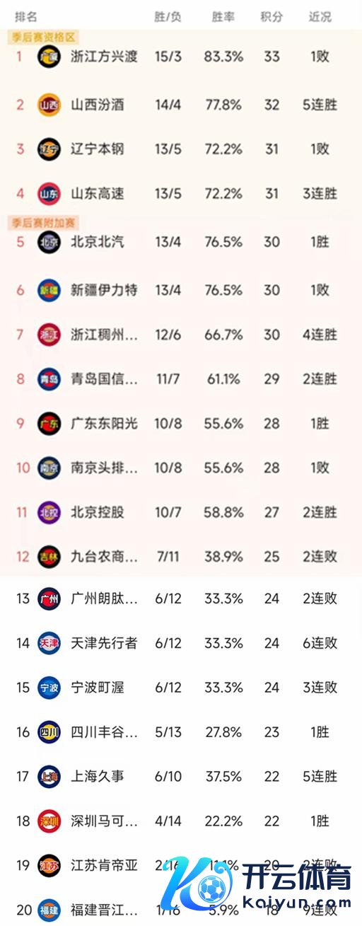前四名球队永别是广厦、山西、辽宁和山东,广厦本轮爆冷77-101不敌深圳,7连胜被驱逐,诚然遇到败仗,33个积分照旧让他们排在榜首,孙铭徽因为脑摇荡承接缺席影响了广厦的实力,如若广厦的声势复原无缺,何况领有有余的体能,他们依然是强队之一。山西和山东成为最强的黑马,山西昨晚在主场又完成一场逆转,以95-94险胜辽宁,豪取5连胜,和上海保抓现时定约最长连胜。