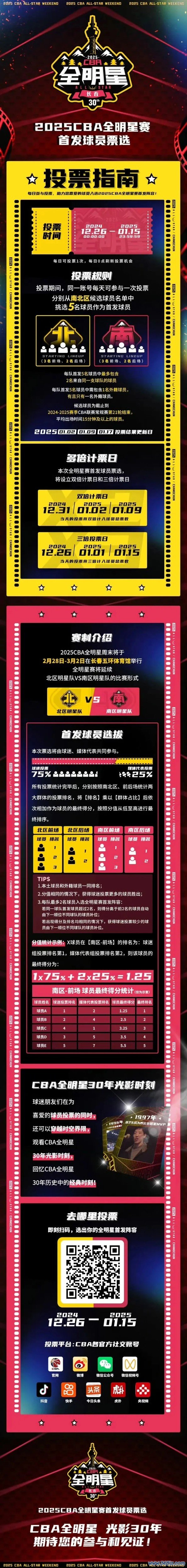 CBA各官方酬酢账号均可投票!单日可投票1次,逐日0点刷新投票契机,投票戒指于2025年1月15日23:59:59。