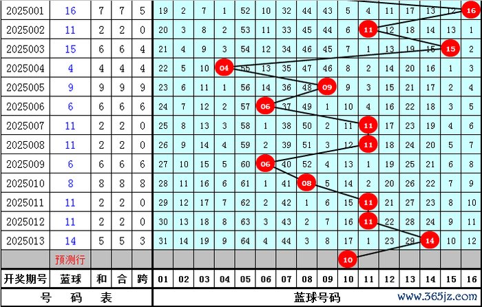 双色球第2025013期奖号为:04 14 16 23 24 30 + 14,红球三区比为1:2:3,奇偶比为1:5,012路比为2:2:2,蓝球为偶数、大号、2路号。