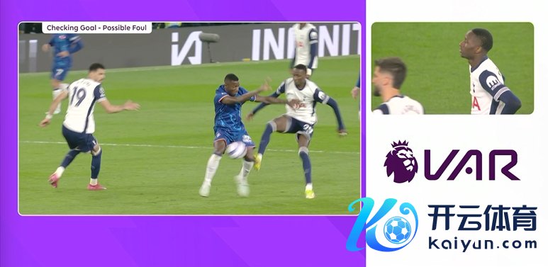 2025-11-0904月04日讯 英超第30轮体育录像/图片,切尔西对阵热刺。70分钟,萨尔远射破门,VAR介入。回放看,萨尔拼抢中蹬踏凯塞多,裁判切身不雅看回放后取消进球,向萨尔出示黄牌。