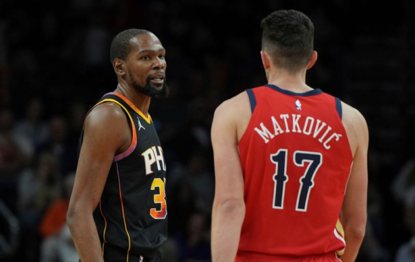 他们看到杜兰特真是毫无征兆地就对马特科维奇挥了一拳体育录像/图片