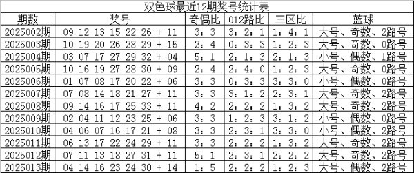 双色球第2025013期奖号为:041416232430+14,红球三区比为1:2:3,奇偶比为1:5,012路比为2:2:2,蓝球为偶数、大号、2路号。 区间...