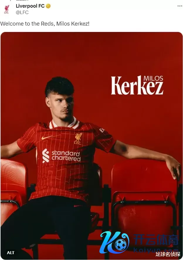 官方:利物浦晓谕从伯恩茅斯签下了米洛斯-科尔克兹,两边签下了一份5年合同。