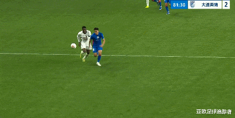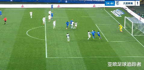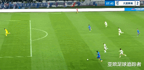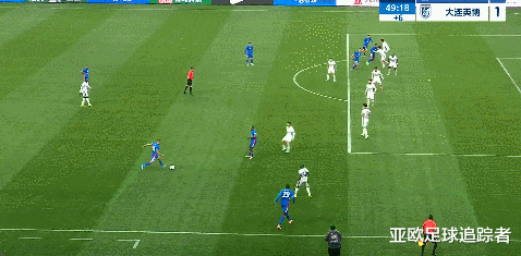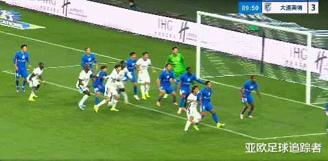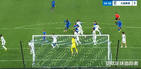 比赛第45+2分钟,大连英博后场出球诞妄被断,盖伊晃开利昂后将球打高。