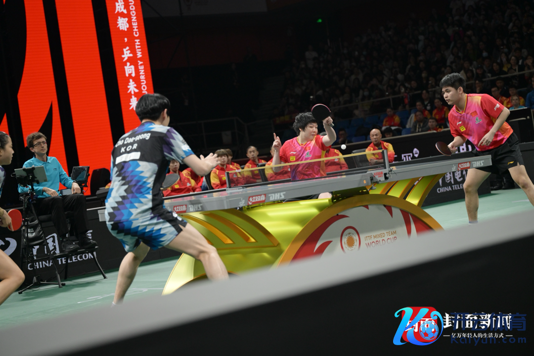 今天首盘混双比赛,中国队还是派出了林诗栋/蒯曼的“栋曼”组合,栋曼组合第一局就遇到失利,不敌赵大成/申裕斌组合。但随后他们连扳两局,匡助中国队2-1跳动。