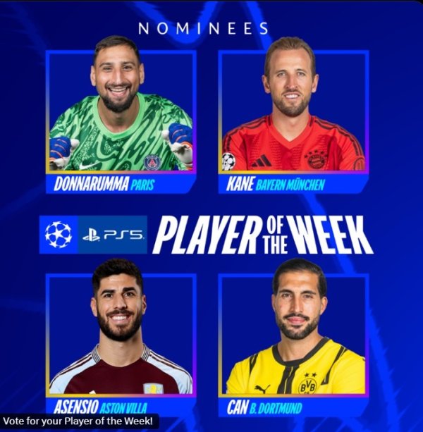 具体如下:多纳鲁马(巴黎):2扑救+点球大战2次扑点阿森西奥(维拉):2粒进球埃姆雷-詹(多特):1粒进球凯恩(拜仁):1球1助攻 体育赛事直播