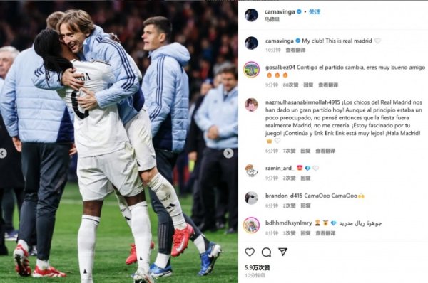 体育赛事直播 3月13日讯 皇马在本轮欧冠点球淘汰马竞,卡马文加替补出场进展拉风。 他也在赛后通过社媒体育赛事直播,晒出我方和宿将莫德里奇在点球大战之后相拥庆祝...