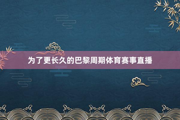为了更长久的巴黎周期体育赛事直播