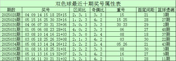 双色球第25037期奖号为03、06、11、20、21、31+02。红球三区比为3:2:1体育赛事直播,奇偶比为4:2。 第2025038期双色球红球保举: 红...