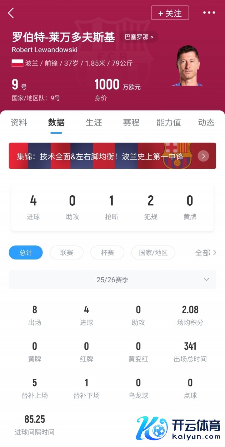 本赛季莱万代表巴萨出战8场比赛,打进4球。