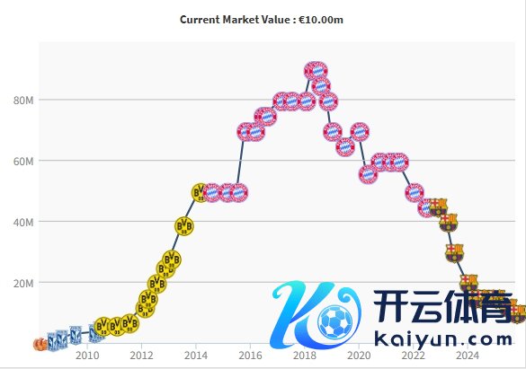 莱万的身价曾在2018年遵循拜仁技艺达到巅峰的9000万欧。