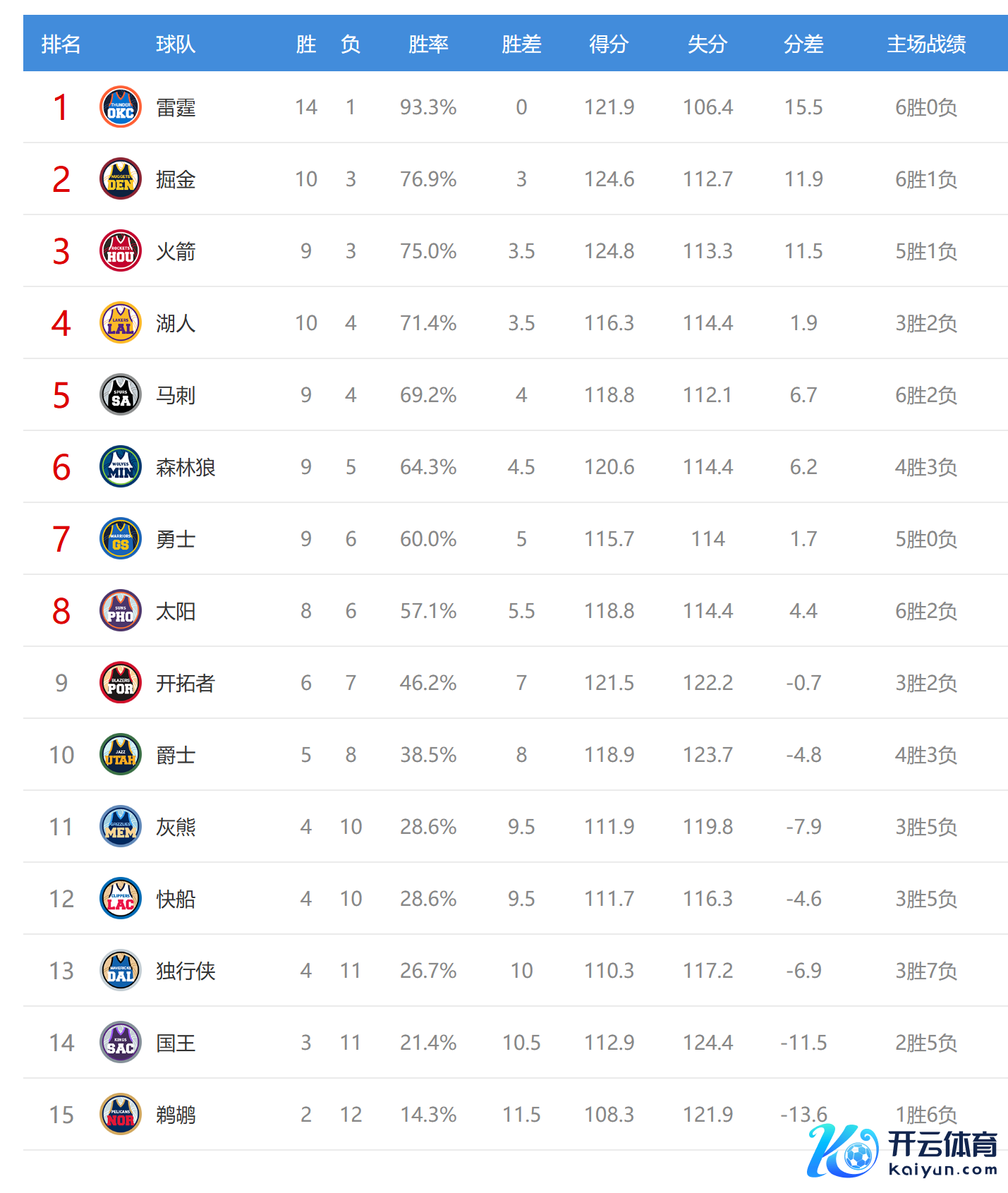 雷霆赢球后6连胜,战绩14胜1负高居定约第一。鹈鹕输球后2胜12负,名次西部第15。