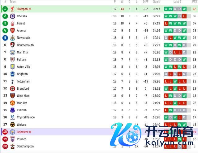 北京时辰12月26日晚间到12月27日凌晨,英超第18轮进行了8场较量。跟着利物浦对阵莱斯特城的比赛摒弃,英超的积分榜也随之更新。