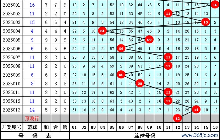 蓝球分析:上期蓝球为大号14,最近10期大号蓝球开出6次,小 号蓝球开出4次,大号蓝球证实活跃,本期延续海涵大号蓝球,独蓝推选12。