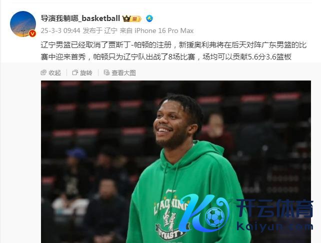 跟着这次举止完了,接下来各球队将启动备战CBA第三阶段比赛。上昼9点,媒体东说念主导演酬酢发文精采官宣,辽宁男篮外助告分袂队,他等于内线帕顿。他发文暗示辽宁男篮仍是取消了贾斯丁-帕顿的注册。