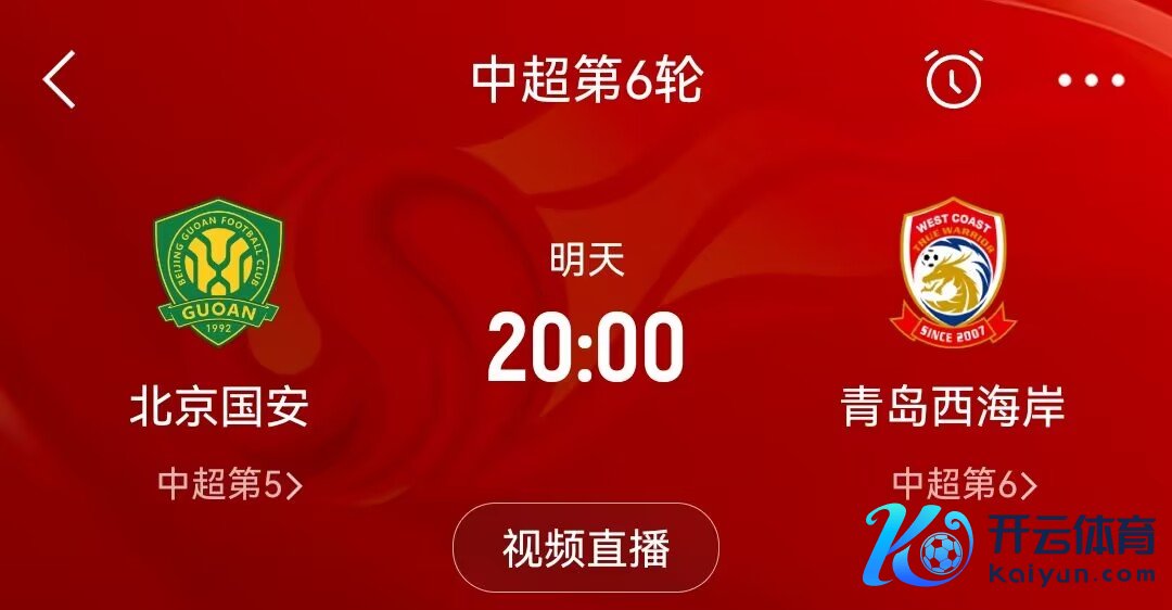 04月10日讯 足球报音书,中超联赛第六轮,北京国安对阵青岛西海岸的比赛原定于本周五20点整在北京工东谈主通晓场进行,现在因天气原因,本场比赛将大要率延伸,具体日历仍恭候进一步细目。