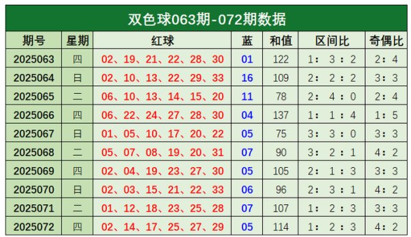 双色球第2025072开奖奖号:红球02、14、17、25、27、29,蓝球05。和值114,龙头02,凤尾29,区间比1:2:3,冷热比3:3。蓝球开出极少号...