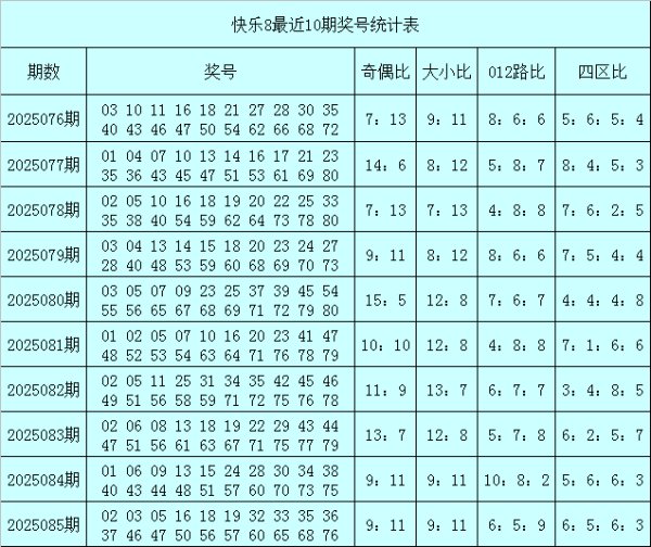 福彩满足8第2025085期开出奖号:0203051618193233353637464750565760656876体育最新信息,其中奖号奇偶比为9:11,大...