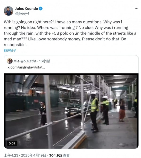 4月19日讯 球迷恶搞伪造孔德在街上跑步的视频,孔德社媒修起暗示窘态其妙。 巴萨主帅弗里克在发布会上暗示,要是告诉孔德某场比赛只给他30分钟或更少的出场时辰,孔...